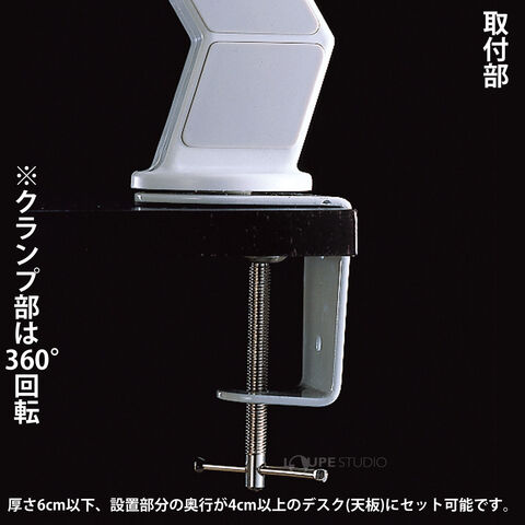 厚さ6cm以下、設置部分の奥行が4cm以上のデスク(天板)にセット可能です。