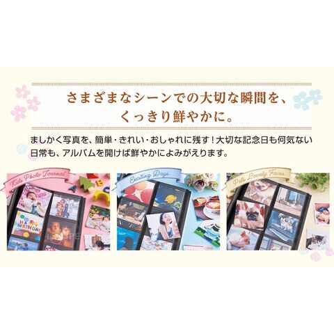 写真が映える高透明黒台紙。大切な瞬間はいつまでも鮮やかに写真をくっきり鮮やかに収容できます。
