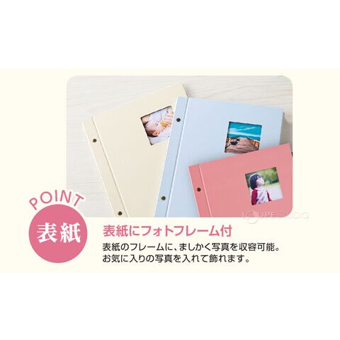 閲覧性が高い見開き12面・表紙にフォトフレーム付_表紙のフレームに、ましかく写真を収容可能