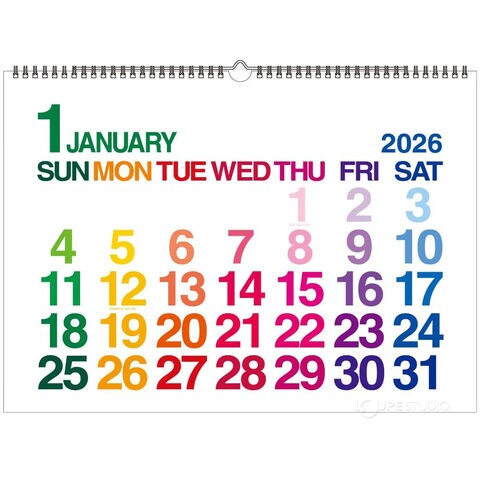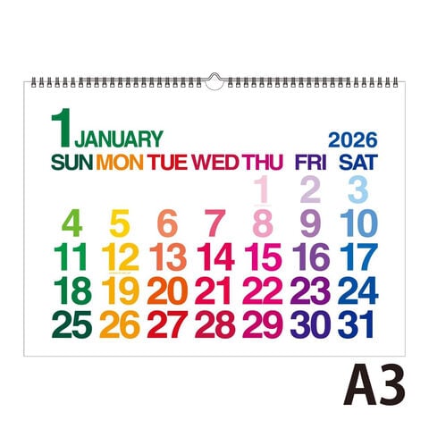 カレンダー 2026 A3壁掛 カラフル 壁掛け おしゃれ シンプル 2026年 新日本カレンダースペック