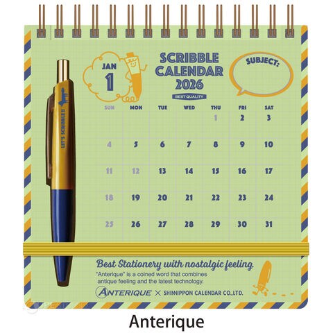 文具ブランド「Anterique」とのコラボのペン付きで、持ち運び可能な卓上カレンダー。
