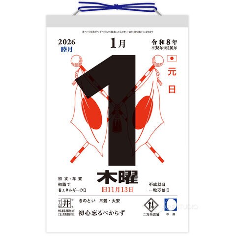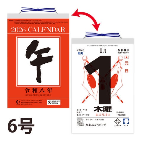 カレンダー 2026 6号型日めくりカレンダー 6号 壁掛け おしゃれ シンプル 2026年 新日本カレンダースペック