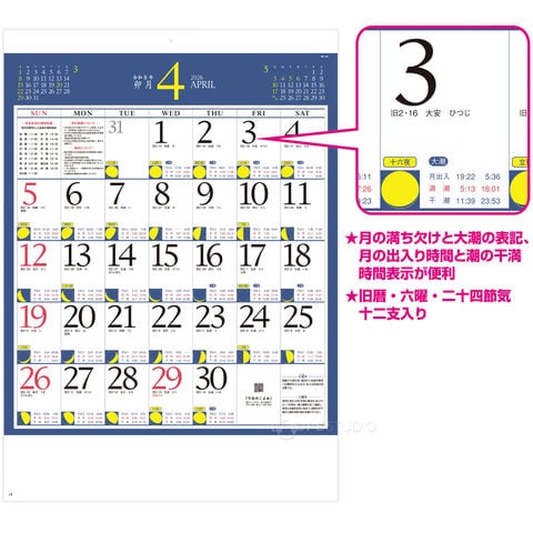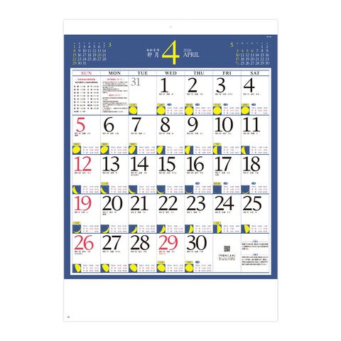 カレンダー 2026 月暦 壁掛け おしゃれ シンプル 2026年 スケジュール 新日本カレンダースペック
