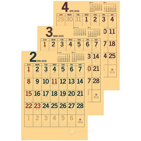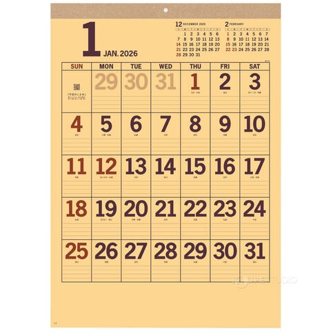 カレンダー 2026 カラークラフトメモ 壁掛け おしゃれ シンプル 2026年 スケジュール 新日本カレンダースペック