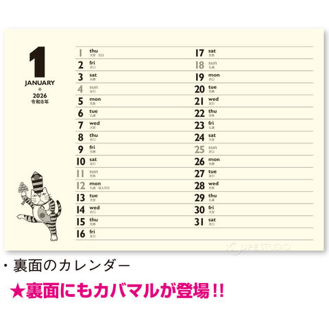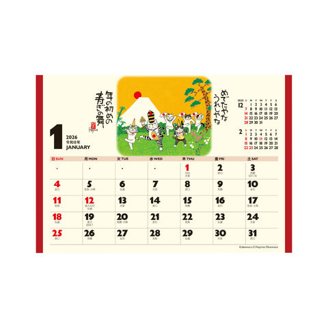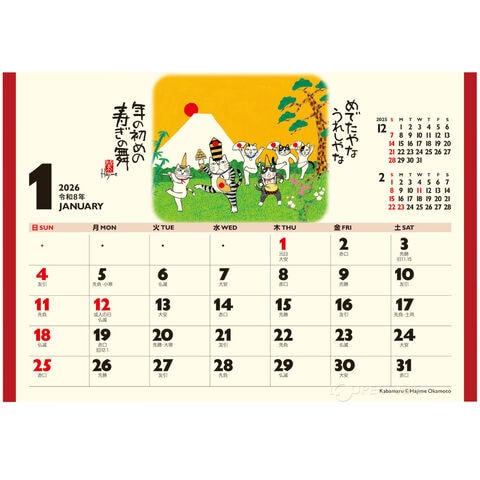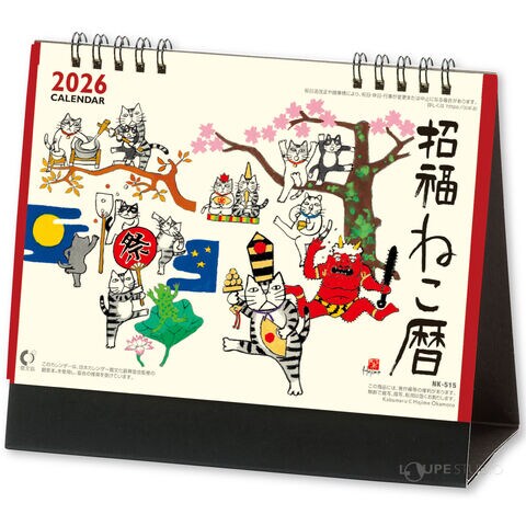 カレンダー 2026 卓上カレンダー 招福 ねこ暦 おしゃれ シンプル 2026年 スケジュール 新日本カレンダースペック