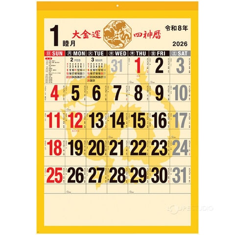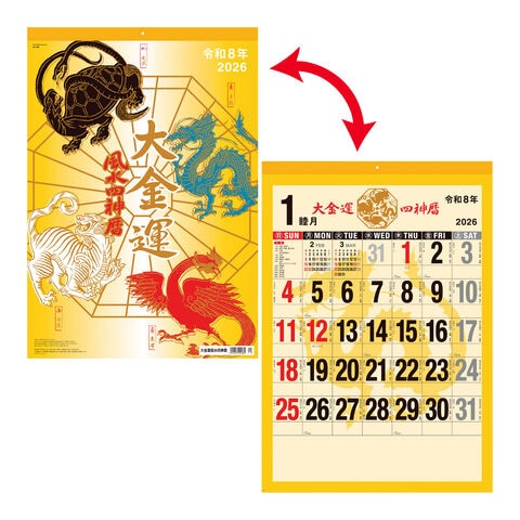 カレンダー 2026 大金運 風水四神暦 壁掛け おしゃれ シンプル 2026年 スケジュール 新日本カレンダー