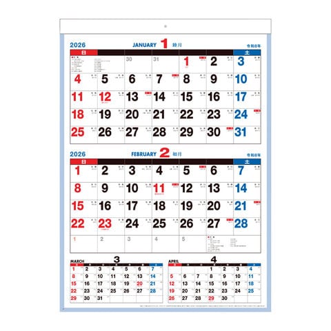 カレンダー 2026 2ヶ月便利こよみ 壁掛け おしゃれ シンプル 2026年 スケジュール 新日本カレンダースペック
