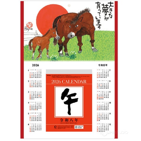 カレンダー 2026 午台紙付 日めくりカレンダー 岡本肇 4号 壁掛け おしゃれ シンプル 2026年 新日本カレンダースペック