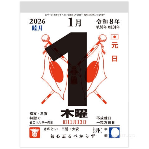 カレンダー 2026 午台紙付 日めくりカレンダー 岡本肇 4号 壁掛け おしゃれ シンプル 2026年 新日本カレンダー