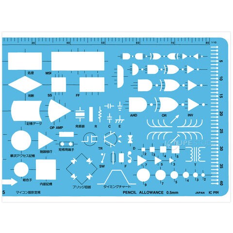 品質の良いプラスチックを精密加工し、耐久性もあるマイコン設計定規です。透明度が高いため図面も識別しやすく、また、ブルーの本体色は目にもやさしいです。ペンなどを使用する際、にじみによる汚れを防止するインクエッジ付きです。
