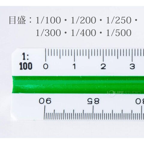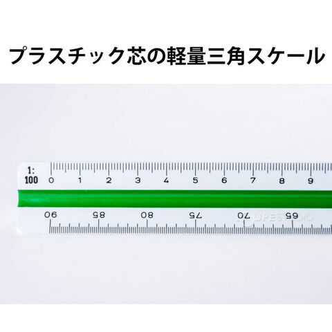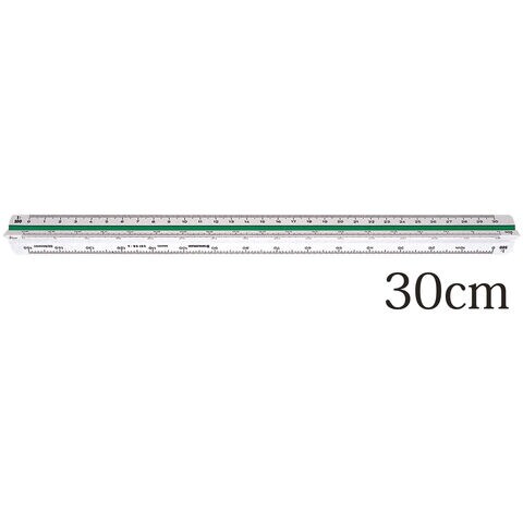プラスチック芯の30cmタイプ一般用三角スケールです。目盛り縮尺は1/100・1/200・1/250・1/300・1/400・1/500となります。芯の素材を全てアルミにすることにより、反りや歪みなどの変形を極力防ぐことができるようになりました。また、レーザー加工により、正確で見やすい縮尺目盛りです。