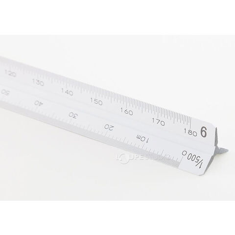 芯のすべてをアルミ製にすることにより、反りやゆがみなどの変形を極力防いだ30cmタイプの一般用三角スケールです。レーザーで加工を施した目盛りは見やすく、狂いのない正確な縮尺となっています。1/100・1/200・1/250・1/300・1/500・1/600です。