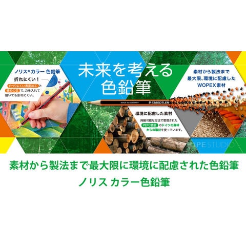 使用する素材から、その製造工程に至るまで一貫して環境に配慮し開発したサステナブルな色鉛筆です。すべりにくい表面加工としっかりした書き心地の芯は持ちやすく、力を入れて描いても折れにくくなっています。やさしい色合いで重ね塗りやグラデーションなどにも◎ほどよい硬さのある芯は細かい描写にも適しており、細密描写や細かいぬりえなどにもおすすめです。