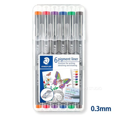 ステッドラー ピグメントライナー0.3mm/0.5mm 6本セット 正規品 ケース入り 水性ペン 文具 文房具 イラスト 製図 建築 スケッチ 線画 STAEDTLER