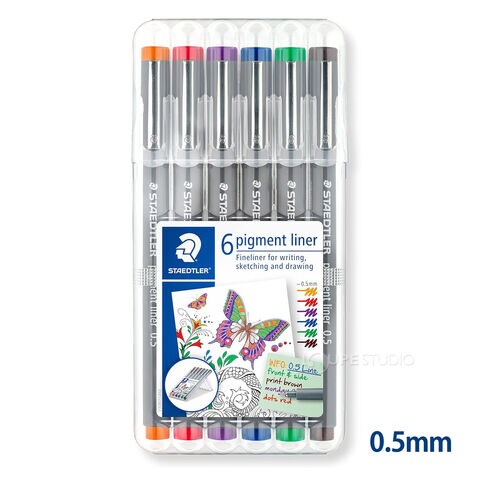 ステッドラー ピグメントライナー0.3mm/0.5mm 6本セット 正規品 ケース入り 水性ペン 文具 文房具 イラスト 製図 建築 スケッチ 線画 STAEDTLER スペック