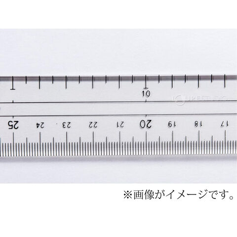 両側に目盛りがついており使いやすいアクリル製50cm定規です。本体の厚さは3mmです。