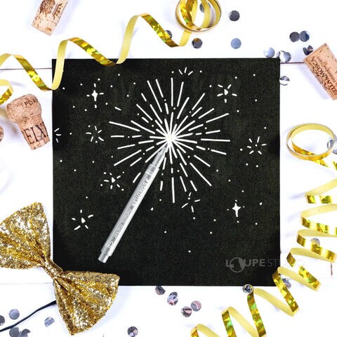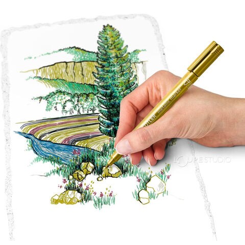 白い紙はもちろん、黒い紙でもキレイな発色で描けるメタリックマーカーです。スラスラとした軽快な描き心地で写真などにも描けるため、スクラップブッキングのデコレーションやイラストなどに最適です。ピグメントライナーの斧方が1本サービスで付属しています。