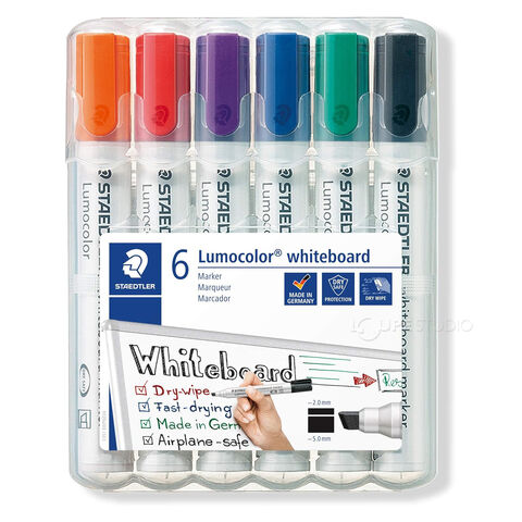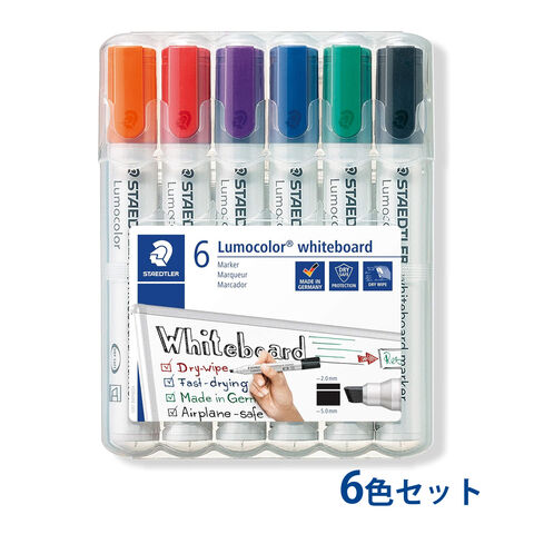 ステッドラー (STAEDTLER) ルモカラー ホワイトボードマーカー 角芯[線幅2~5mm]6色セット メーカー正規品 筆記具 文房具 おしゃれ デザイン 誕生日 プレゼント ギフト