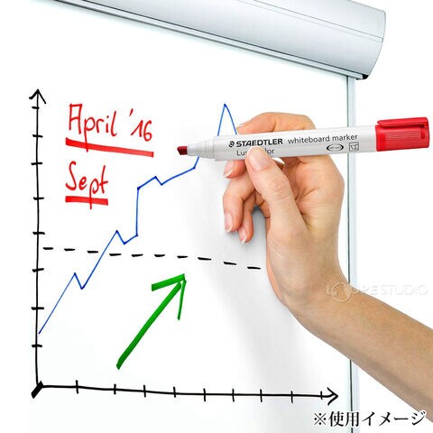 高い機能性で多くのプロフェッショナルユーザーから厚い信頼を得ているルモカラーペンシリーズのホワイトボードマーカーです。キャップを閉め忘れても3日間であれば、独自の特殊インクがペン先に保護膜をつくり、ペン先の乾燥を防ぎます。(※ISO554)