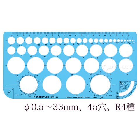 品質の良いプラスチックを精密加工した高級テンプレートです。板は使いやすい厚さで、耐久性があり長期間使用できます。また、青いテンプレートは透明度が高いため、図面もよく見え識別がしやすくなっています。