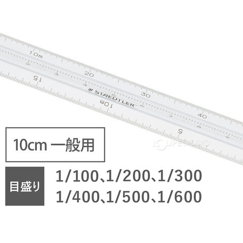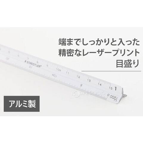 芯のすべてをアルミ製にすることにより、反りやゆがみなどの変形を極力防いだ10cmタイプの一般用三角スケールです。レーザーで加工を施した目盛りは見やすく、狂いのない正確な縮尺となっています。目盛りは1/100・1/200・1/300・1/400・1/500・1/600です。