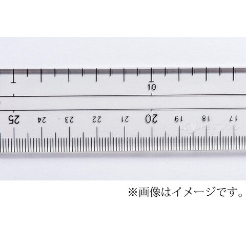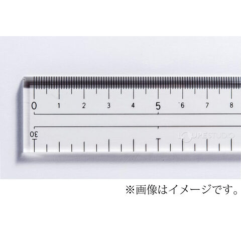 両側に目盛りがついており使いやすいアクリル製40cm定規です。本体の厚さは3mmです。