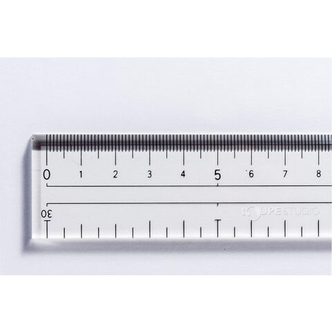 両側に目盛りがついており使いやすいアクリル製30cm定規です。本体の厚さは3mmです。