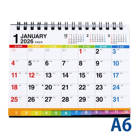 カレンダー 2026年 1月始まり 2026 E134 卓上 シンプル コンパクト 書き込み デスク エコカレンダー卓上 A6 インデックス付き メモ 予定 スケジュール オフィス 机 文房具 高橋書店 TAKAHASHIスペック