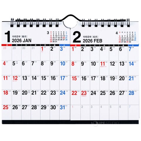 エコで地球にやさしい、シンプルな壁掛・卓上兼用タイプのカレンダー[B7サイズ×2面]