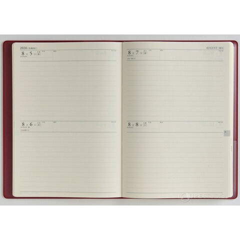 - デイリーページ:1ページに2日分記入できる形式。1日の記入スペースが広いので、たっぷり書きたい人にオススメ。ビジネスユースはもちろん、日記としてもお使いいただけます。