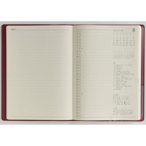 - 高級感があってお洒落なエンジ色のカバー。1頁2日の記入形式はたくさん書きたい方におススメのロングセラー商品です。毎月の月扉では、年中行事や季節の役立つ情報も掲載しています。