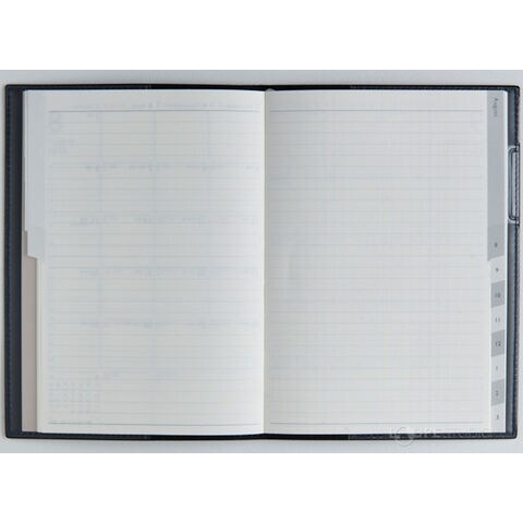 - シックなカラーでステッチ入りのカバーは、毎年細部にまでこだわって製作しています。記入スペースと持ち運びやすさのバランスがいいB6サイズ。もっと書きたい方にはA5判の「ディアクレール ラプロ」シリーズもご用意しています。
