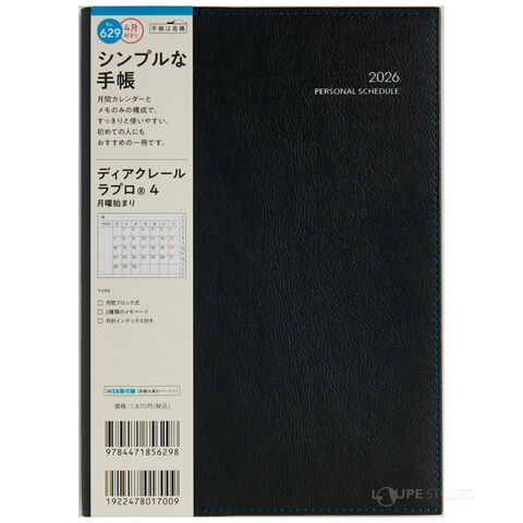 高橋書店 手帳 2026 4月始まり B6 ディアクレール1 見開き1か月 おすすめ スケジュール帳 ビジネス手帳 文房具 メモ帳 スケジュール ビジネス 大人 ダイアリー ブラック 黒 プレゼント 男性 女性 就職祝い 新成人 TAKAHASHIスペック