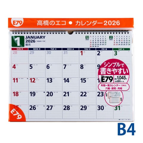 高橋書店 2026年版 1月始まり カレンダー 2026 エコカレンダー壁掛B4スペック