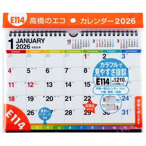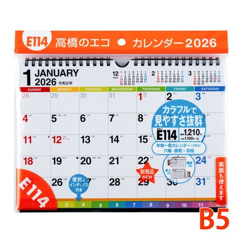 高橋書店 2026年版 1月始まり カレンダー 2026 エコカレンダー壁掛・卓上兼用B5スペック