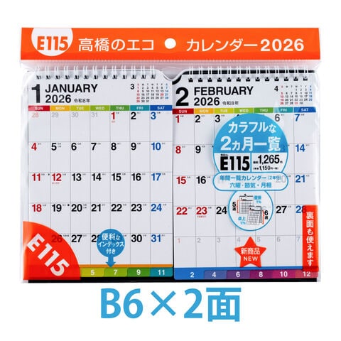高橋書店 2026年版 1月始まり カレンダー 2026 エコカレンダー壁掛・卓上兼用B6×2面