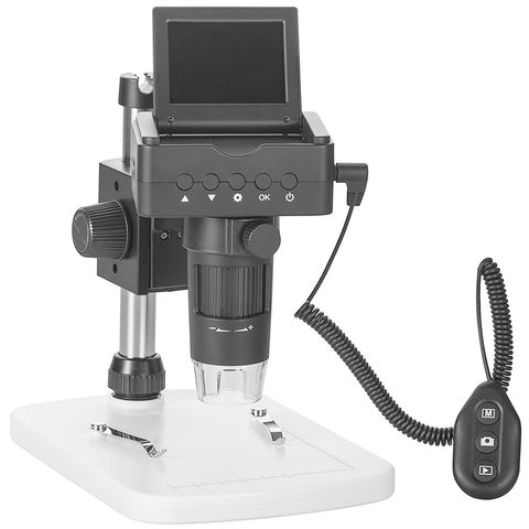 - 付属のスタンドを使えば、小さなものの観察も簡単にピントを合わせることができ、ボタンひとつで撮る・見る・保存が可能な便利なリモコンも標準付属。