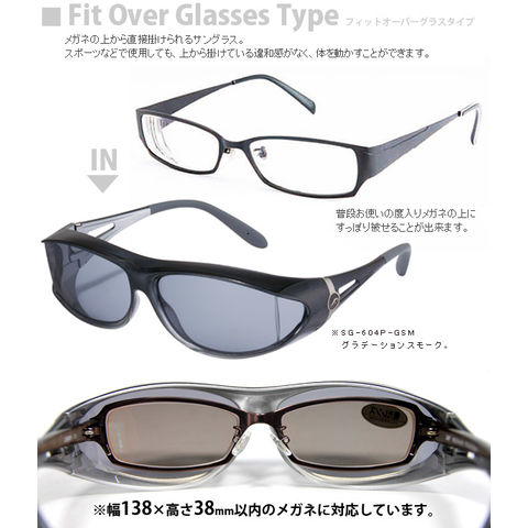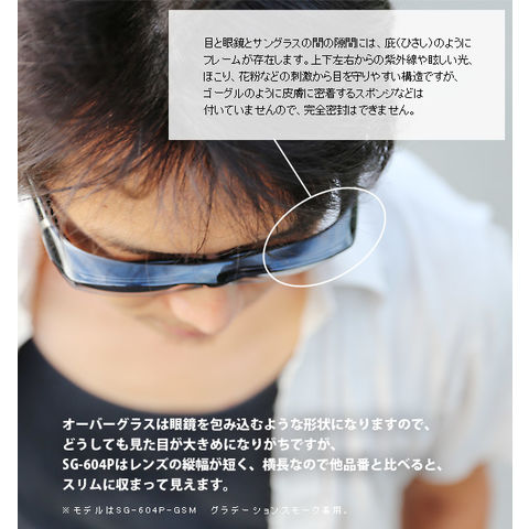 スマートなフォルムが特長のモデル。タウンユースからアクティブなシーンまで、メガネを掛けながら幅広いシチュエーションに対応可能なサングラスです。