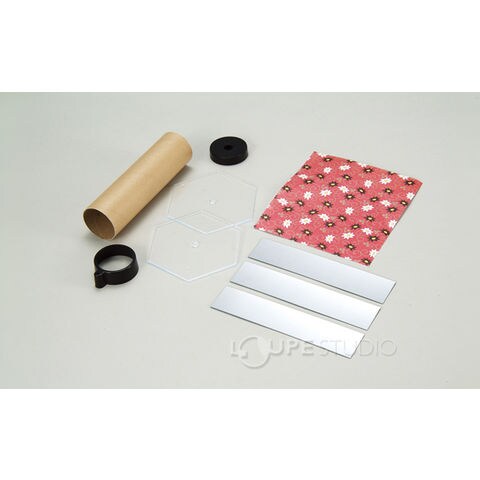 | セット内容 | 紙管(φ39×10mm)×1、ミラー(31×113mm)×3、上・下キャップ×1 千代紙(140×125mm)×1、ネジ×1、透明板・六角(100×100×2mm)×2 |