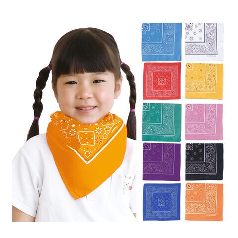 バンダナ ペイズリー柄 ヘアバンド 三角巾 キッズ 運動会 体育祭 発表会 ダンスグッズ 踊り 応援グッズ 赤 白 青 黄 緑 ピンク 紫 黒