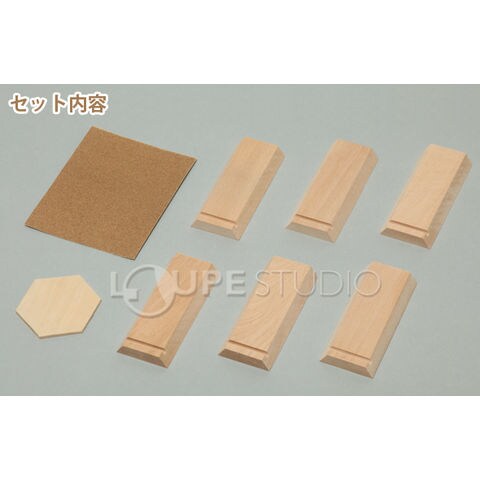 | セット内容 | 側板(95×40×10mm)×6 底板(64×55×2.5mm)×1 紙やすり×1 |