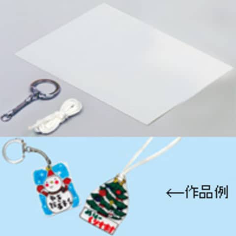 キーホルダー かざりひも付プラ板セット プラ版 プラバン キット 透明 自由研究 工作 学習教材 体験 工作 ホビー クリスマスプレゼント クリスマススペック