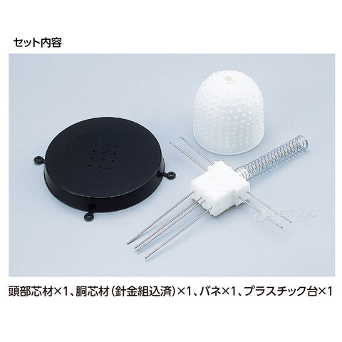商品サイズ頭部用芯材/φ65×65mm、どう体用芯材(バネ・針金取付済)/140×120×22mm、台座(ストッパー4つ付)/φ100×15mm