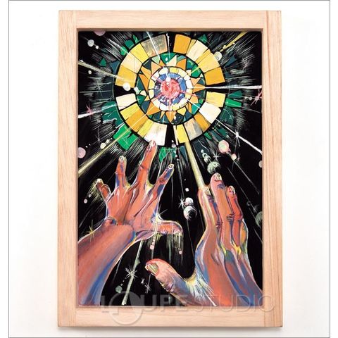 パネルに直接絵や立体作品を描き、そのまま額として飾ります。