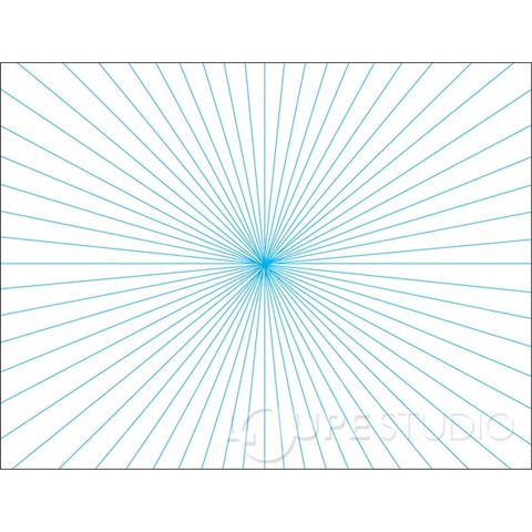 画面の中央に消失点を設定した一点透視用シートです。外枠と中央の十字線に5mmピッチの目盛がついていますので、上下、左右(水平線)の平行が取りやすくなっています。
