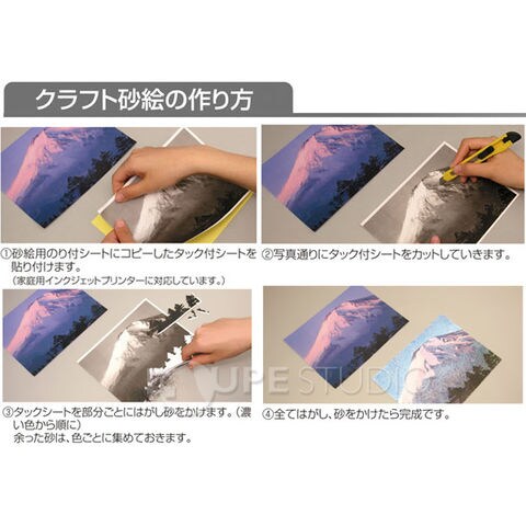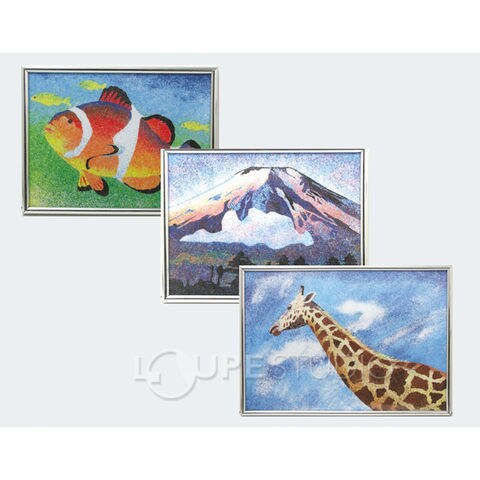 | セット内容 | のり付シート×1 タック付シート×1 メタリックフレーム×1 カラー砂13色組(4g×26本)×1 ミニジョウゴ×1 |