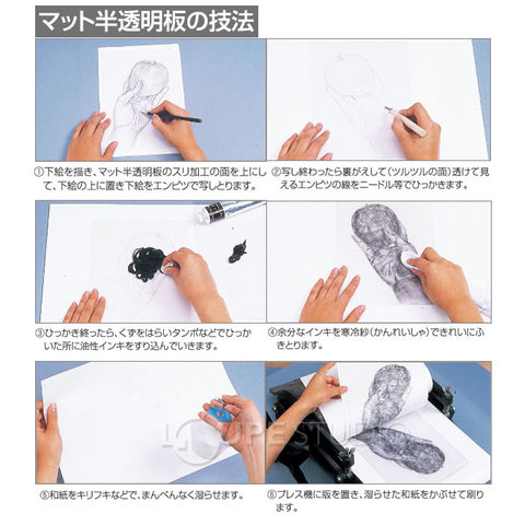 ドライポイント[凹版] マット半透明板 小[240x180x0.5mm] 版画 画材 美術 図工 工作 小学生 自由研究 学校教材スペック