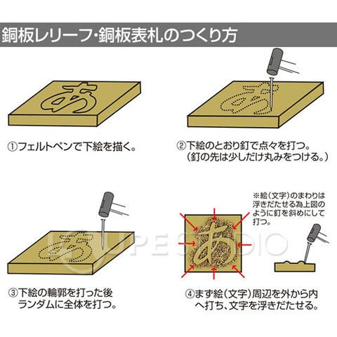 釘でたたき出し、いぶし液をかければ、すばらしい表札ができあがります。