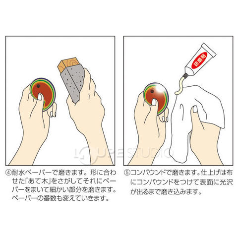 セット内容:堆朱35×35mm角×1、金具×1、棒やすり×1、耐水ペーパー×1、コンパウンド(研磨剤)×1