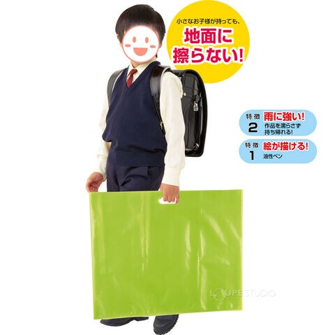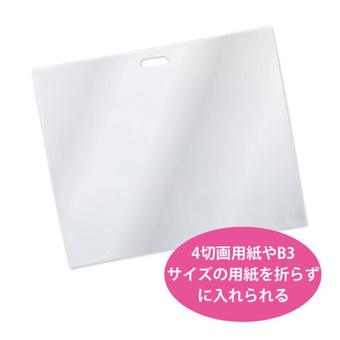 - 4切画用紙や、B3サイズの用紙を折らずに入れられるサイズのビニールバッグです。